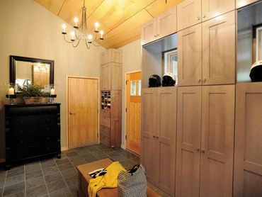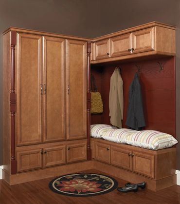 all of it from going any further in your home. We can build custom cabinets to hold all of your coats, rain gear, sporting equipment, boots, shoes, sneakers, umbrellas and more. Baskets or shelves can store hats, gloves, scarves and sunglasses.